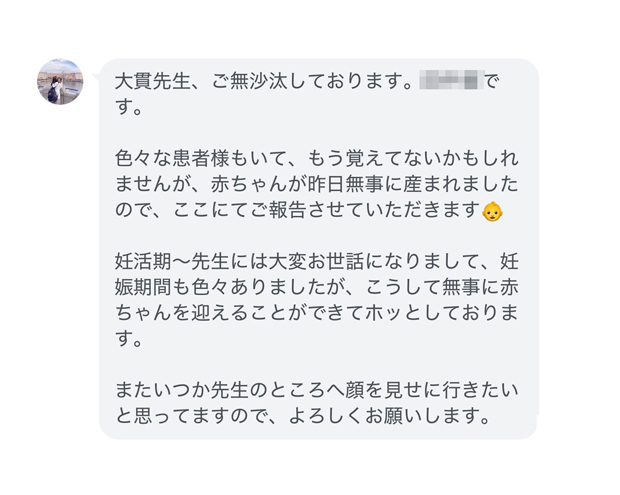 婦人科症状改善や妊娠・出産された患者さんのコメント